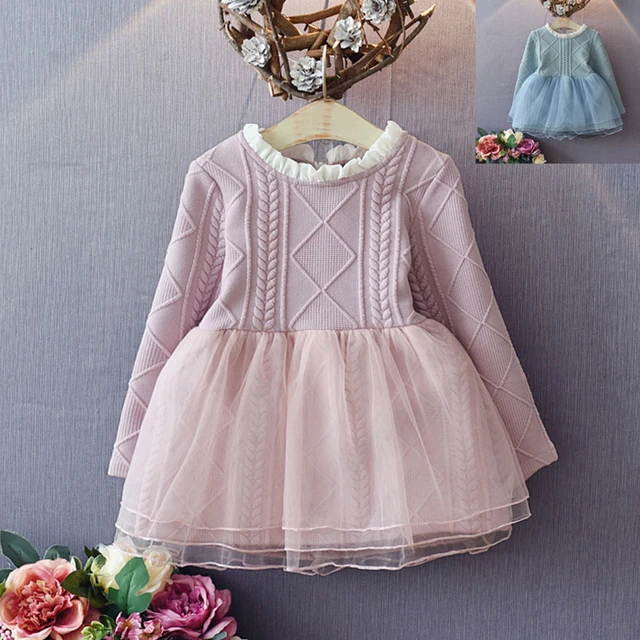 Us 14 34 25 Off Pakaian Bayi Perempuan Musim Dingin Musim Gugur Gaun Putri Benang Bersih Jahitan Desain Pink Hijau Anak Knit Dresses Untuk Berusia