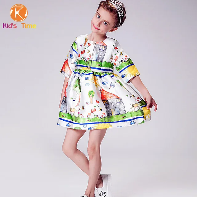 Us 22 99 Desain Baru 2015 Musim Gugur Gadis Gaun Bayi Perempuan Pakaian Rumah Lucu Cetak Baju Anak Setengah Lengan Gaun Putri Ukuran Besar 4 12y