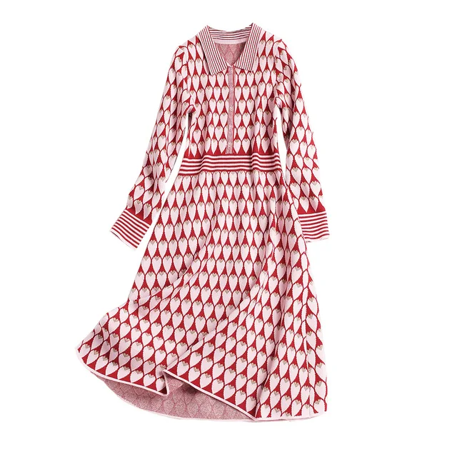 Us 38 5 30 Off 2019 Landasan Pacu Desain Jantung Dicetak Sweater Panjang Gaun Wanita Musim Panas Vintage Lengan Panjang Gaun Pesta Wanita Rajutan