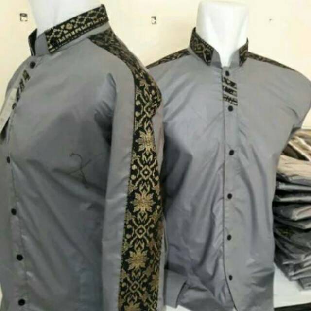 Baju Koko Batik Kombinasi Polos Lengan Panjang Dan Pendek