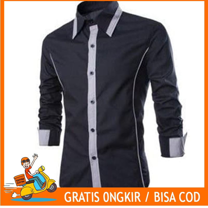 Baju Kemeja Pria Kerja Kantoran Desain Simple Polos Macho Gaya Cool Good Quality