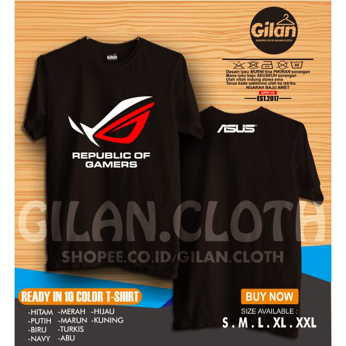 Baju Kaos Gamer Asus Rog Republic Of Gamer Design Gilan Cloth